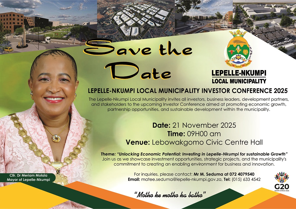 LEPELLE-NKUMPI LOCAL MUNICIPALITY TAKES AN ACTIVE ROLE IN PLEDGES AT THE 5TH LIMPOPO INVESTMENT CONFERENCE Lepelle-Nkumpi Local Municipality has reaffirmed its commitment to driving local economic growth by actively participating in the 5th Limpopo Investment Conference, held at The Ranch.