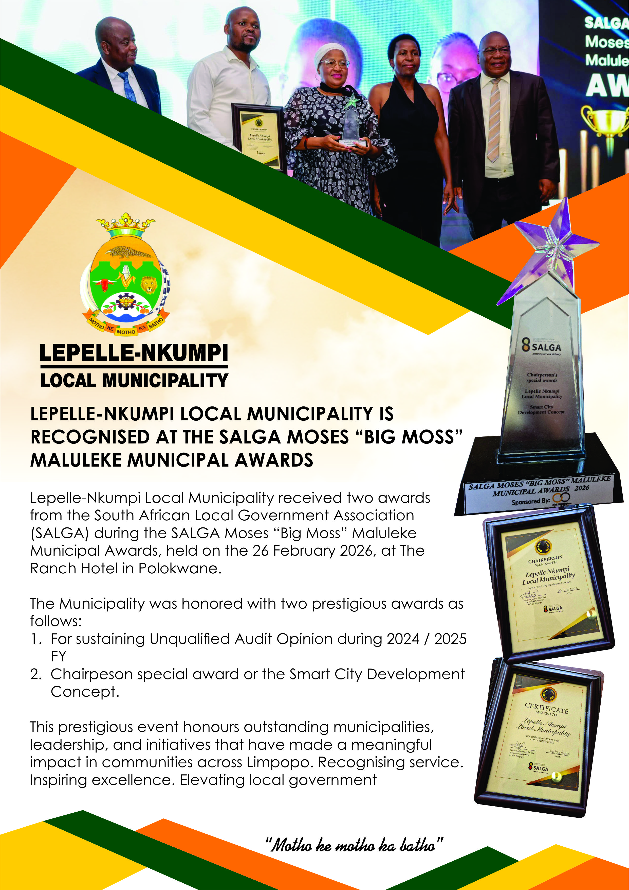 LEPELLE-NKUMPI LOCAL MUNICIPALITY MAKES HISTORY WITH A SUCCESSFUL SOD-TURNING AND INVESTOR CONFERENCE On Friday, 21 November 2025, The Lepelle-Nkumpi Local Municipality celebrated a historic milestone with the successful hosting of a Sod-Turning Ceremony and Investor Conference, marking the beginning of a major transformative development centred on the Lebowakgomo Business Area. The high-level event was attended by the MEC for Limpopo Provincial Treasury, Mr Kgabo Mahoai, the Chairperson of SALGA, Cllr John Mpe, Capricorn District Municipality Representative, Cllr Calvin Masoga, the Chief Whip, Cllr Given Sello, Executive Committee Members, Counc |